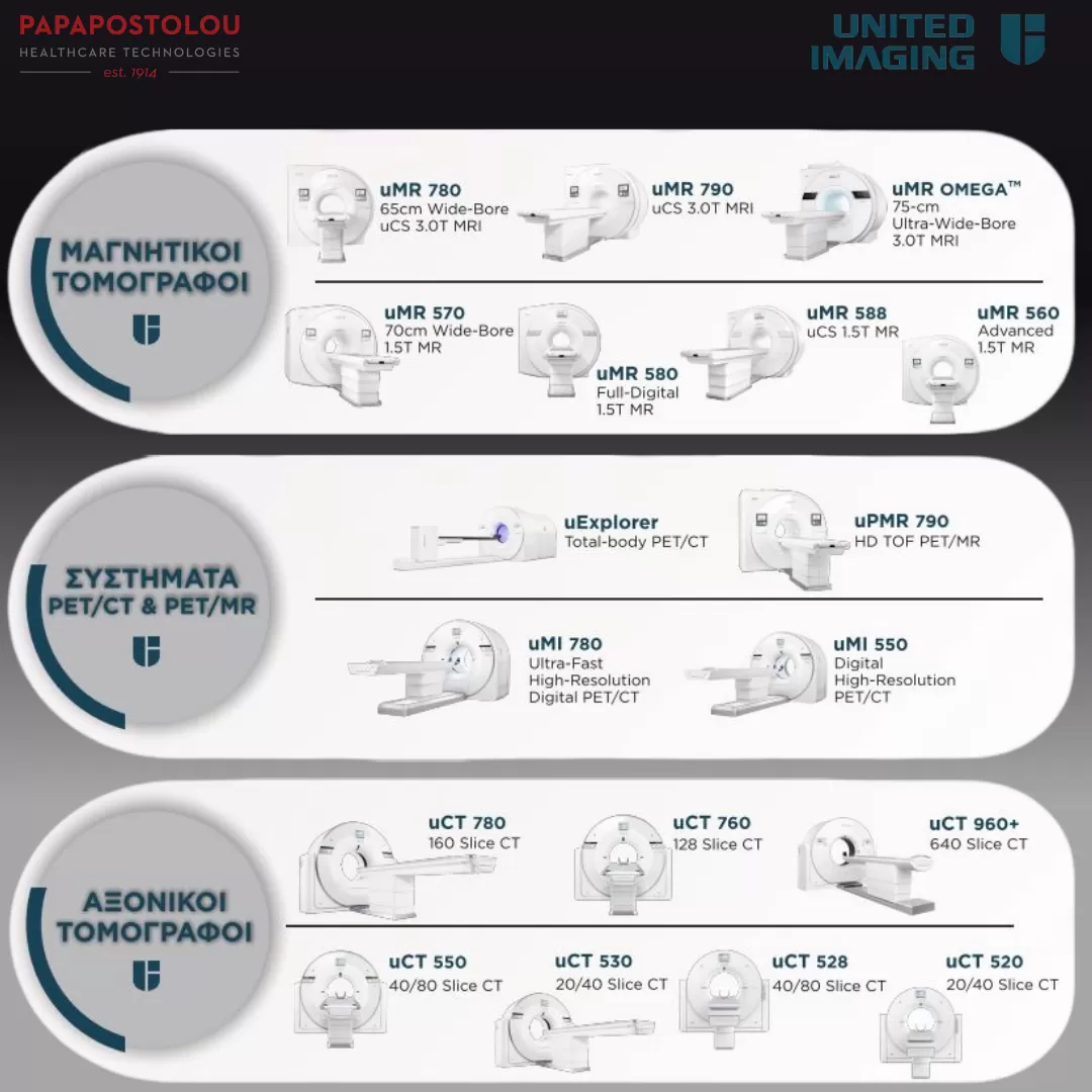 ➡️ Αξονικούς & Μαγνητικούς Τομογράφους καθώς και συστήματα PET/CT και PET/MR νέας γενιάς με τεχνολογίες τεχνητής νοημοσύνης, από τη UNITED IMAGING HEALTHCARE