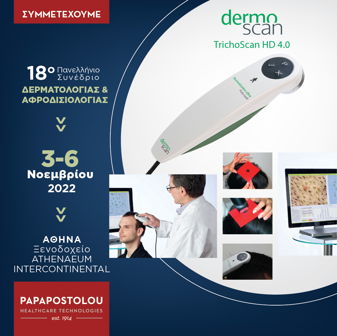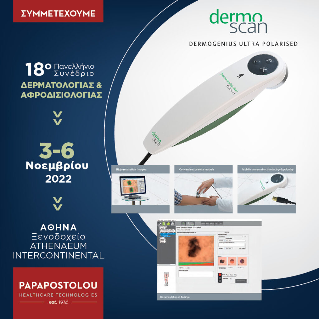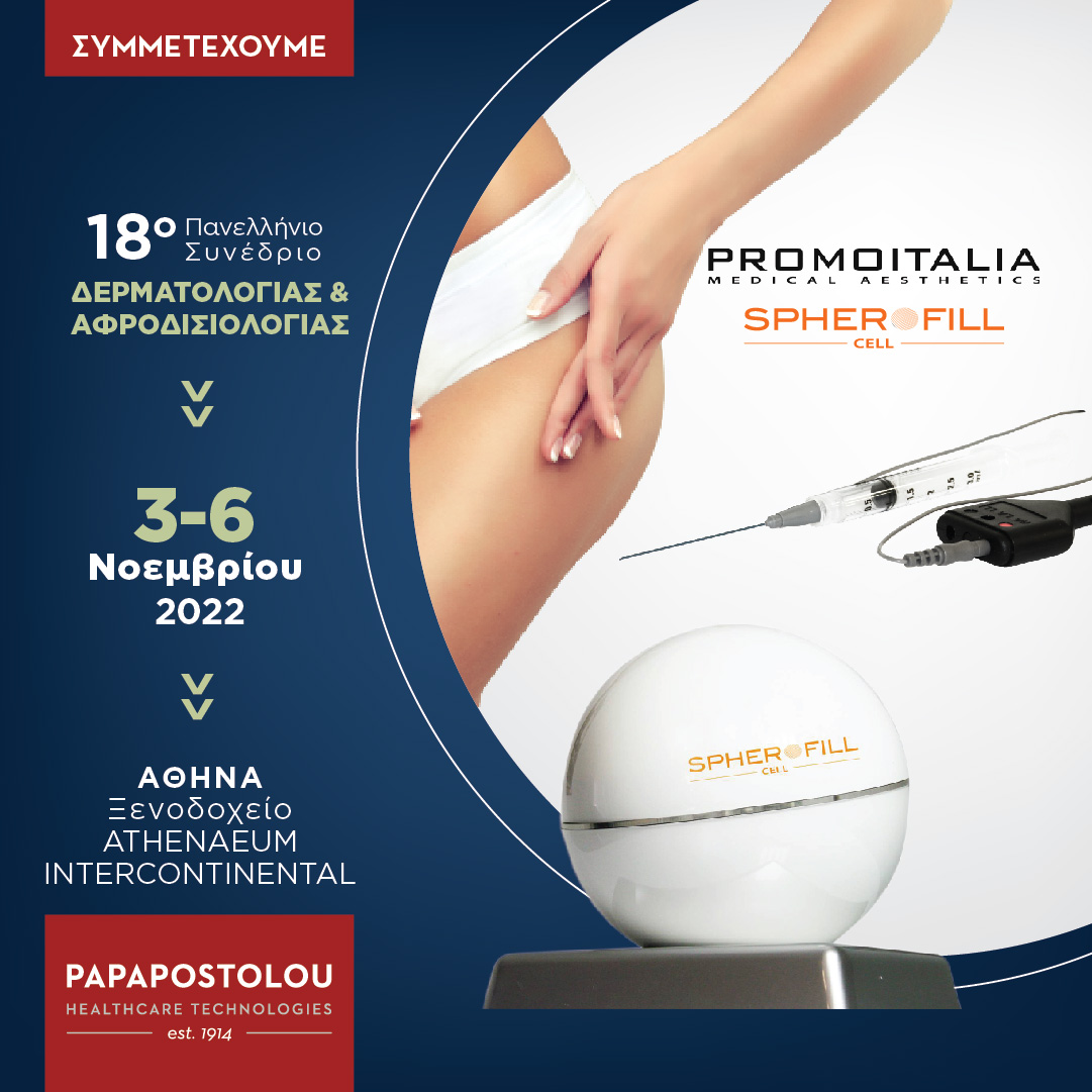 Η εταιρία Papapostolou Healthcare Technologies, σε αποκλειστική συνεργασία με τις κορυφαίες εταιρίες Termosalud, Asclepion Laser Technologies, Medisun, Daeyang, PromoΙtalia & Derungs, στο 18ο Πανελλήνιο Συνέδριο Δερματολογίας και Αφροδισιολογίας, 3-6/11, στο ξενοδοχείο Athenaeum Intercontinental, στην Αθήνα.