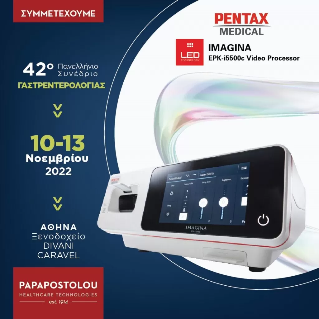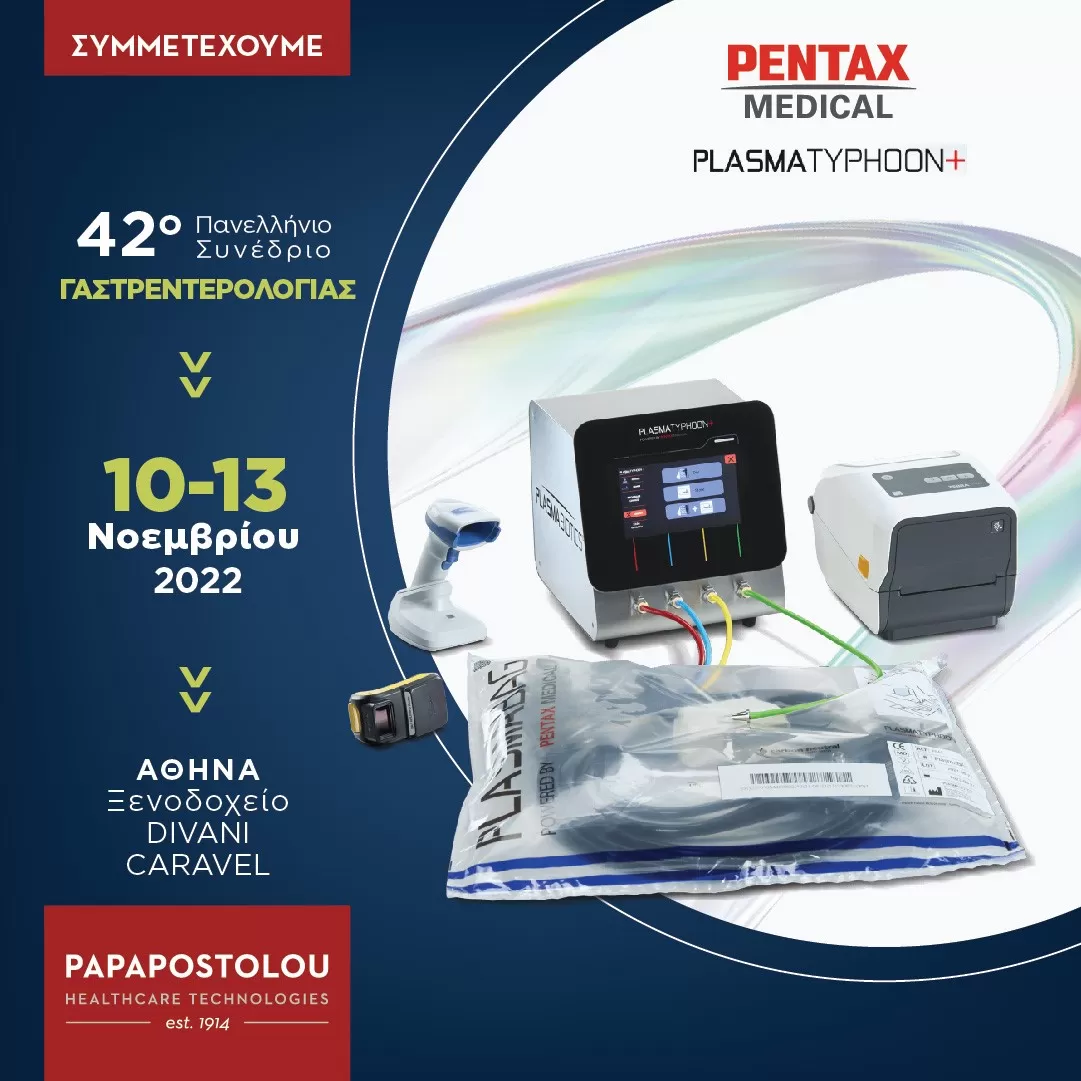 Η PAPAPOSTOLOU HEALTHCARE TECHNOLOGIES παρέχει προηγμένες τεχνολογίες, κατάλληλες για γαστρεντερολογικό ιατρείο – κλινική. Σε αποκλειστική συνεργασία με τις κορυφαίες εταιρίες PENTAX MEDICAL, CANTEL – A STERIS COMPANY & ANX ROBOTICA, παρουσιάζουμε καινοτόμα συστήματα, στο 42ο Πανελλήνιο Συνέδριο Γαστρεντερολογίας.