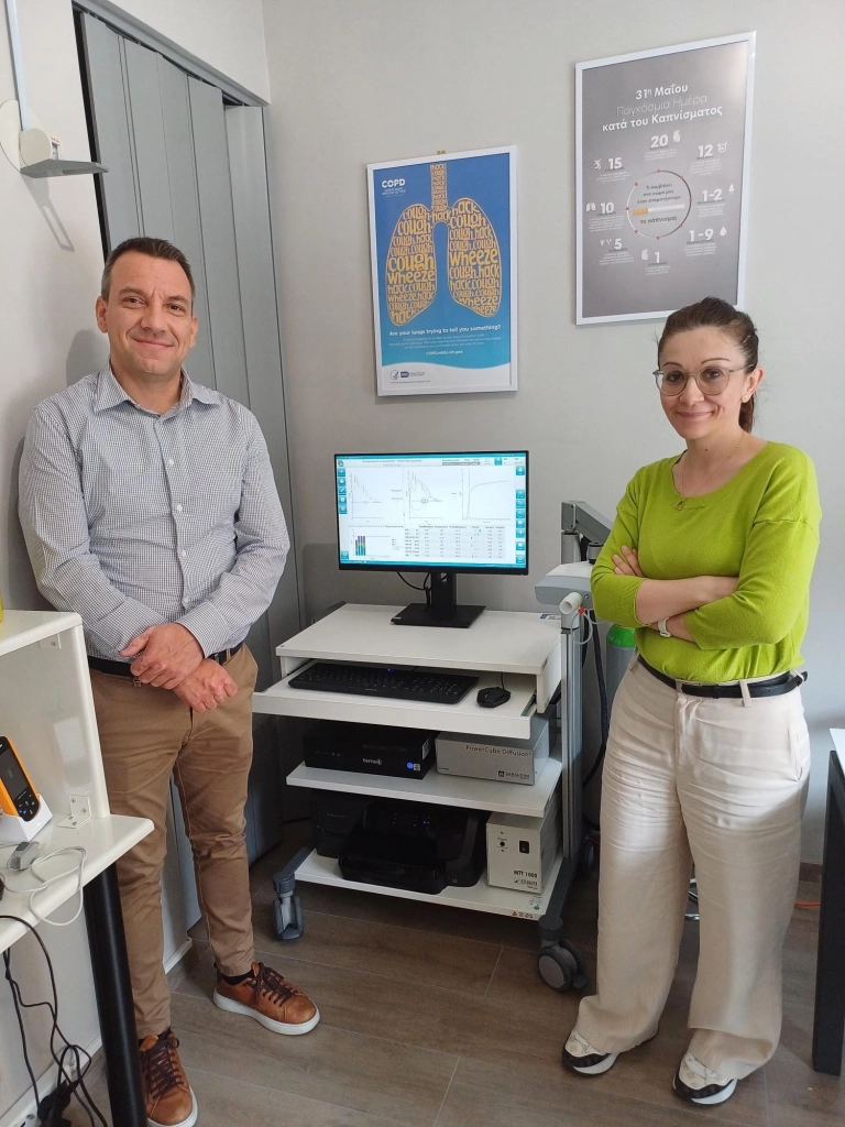 Η κυρία Αποστολίδου εγκαινιάζει το νέο ιατρείο της στην οδό Κοβεντάρων 2, στο κέντρο της Κοζάνης, εξοπλισμένο με το πρωτοποριακό σπιρόμετρο για υπολογισμό διάχυσης διάχυσης και στατικών όγκων, PowerCube Difussion+ του γερμανικού οίκου Ganshorn Medizin GANSHORN Medizin Electronic GmbH. Το μοντέλο Powercube Diffusion+ διαθέτει: