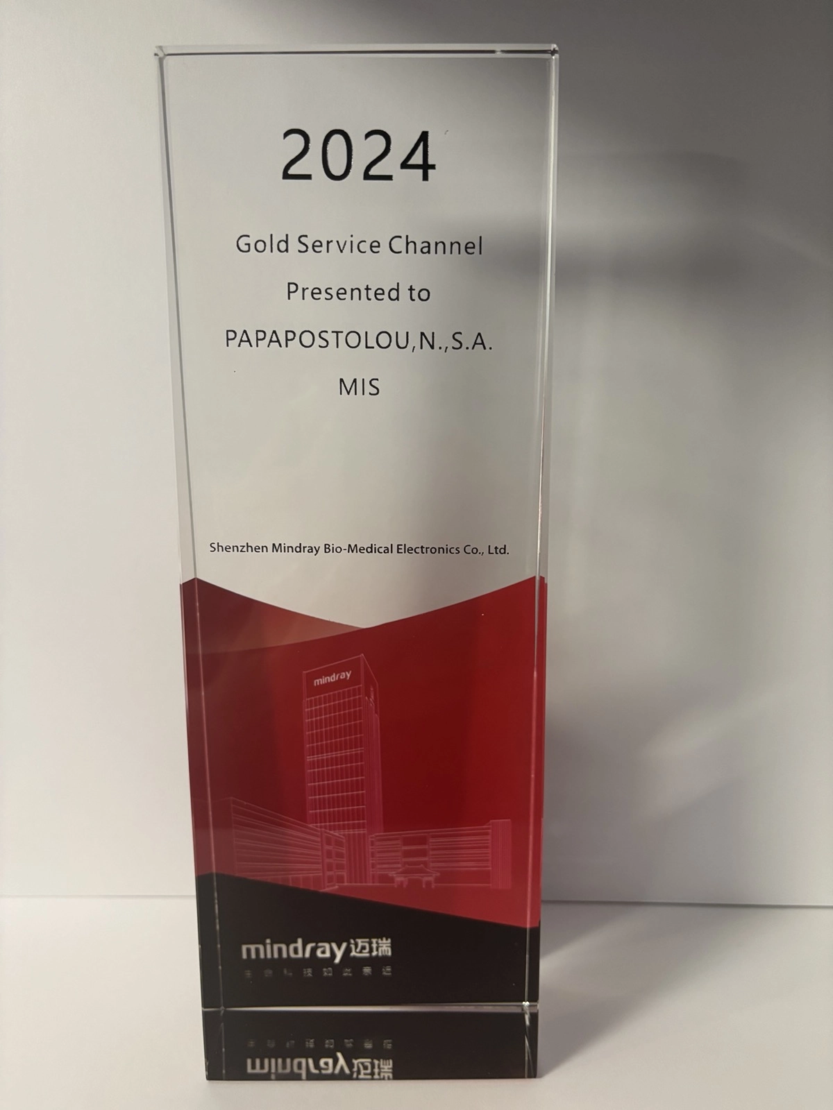 Με ιδιαίτερη χαρά ανακοινώνουμε ότι το Τμήμα Service Υπερήχων της εταιρείας μας, με επικεφαλής τον Senior Μηχανικό Βιοϊατρικής Τεχνολογίας Αντώνη Καρανάτση, βραβεύτηκε για δεύτερη συνεχόμενη χρονιά με την ανώτατη διάκριση “Gold Service Channel MIS” από τη Mindray.