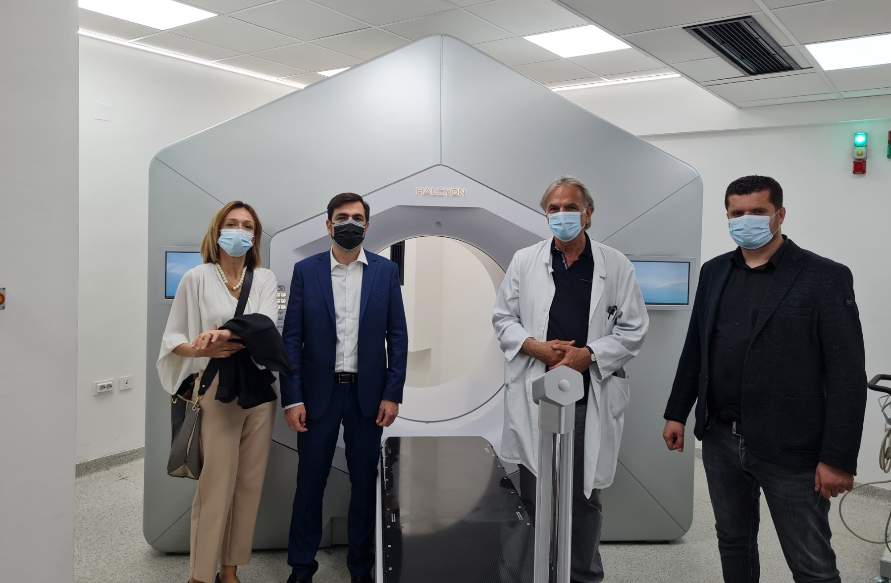 We are proud to announce that Varian’s groundbreaking linear accelerator Halcyon has been installed promptly and is already in clinical use at the University Clinic of Radiation Oncology in Skopje. Minister of Health Bekim Sali was present during the installation ceremony and together with the Director, Dr. Nikola Vasev, visited the premises where this state-of-the-art radiotherapy equipment is installed.